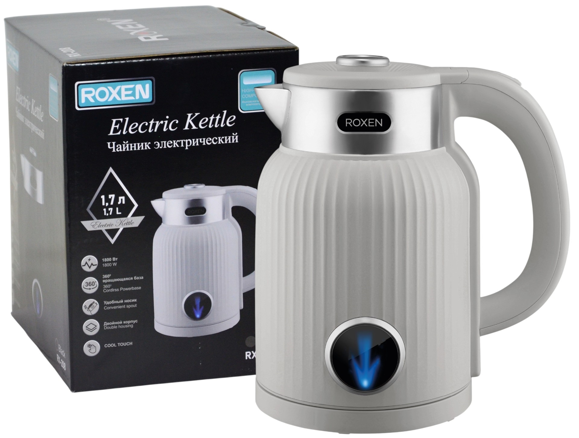 Чайник электрический ROXEN RX-208 Grey 1,7л.Мощность 1800Вт.Двойной корпус (12)