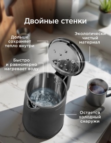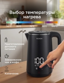 Чайник сенсорный ROXEN RX-221 Black 1,8л 1500Вт.5 режимов нагрева.Двойной корпус пластик/сталь (12)
