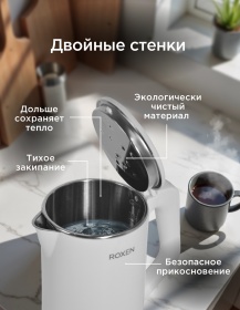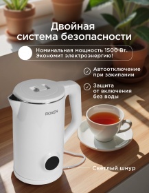 Чайник электрический ROXEN RX-222 White 1,8л.Мощность 1800Вт.Двойной корпус пластик/сталь (12)