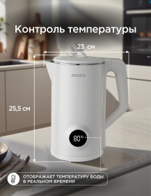 Чайник электрический ROXEN RX-210 White 1,8л 1500Вт.Индикатор температуры.Двойной корпус (12)