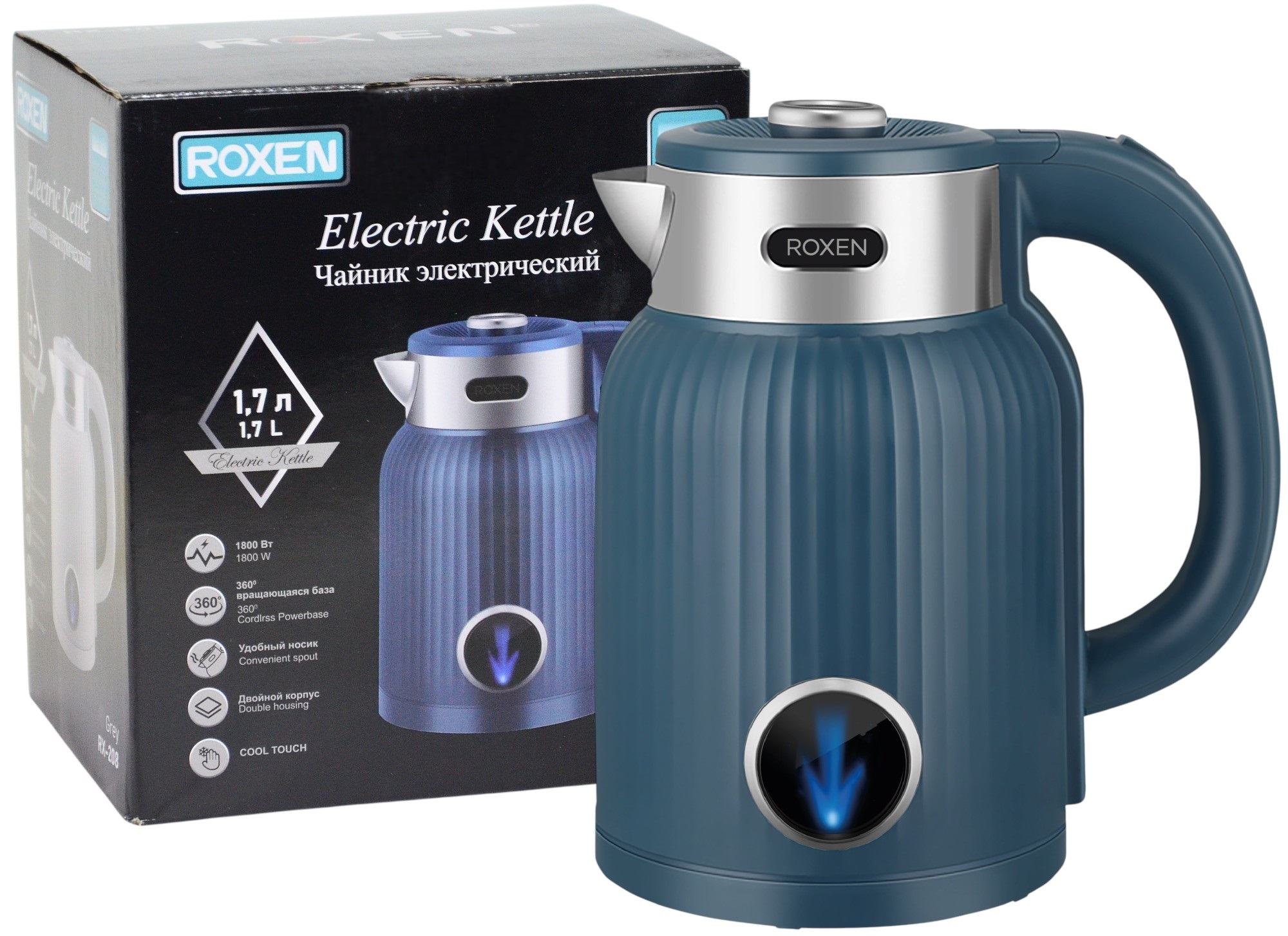 Чайник электрический ROXEN RX-208 Blue 1,7л.Мощность 1800Вт.Двойной корпус (12)